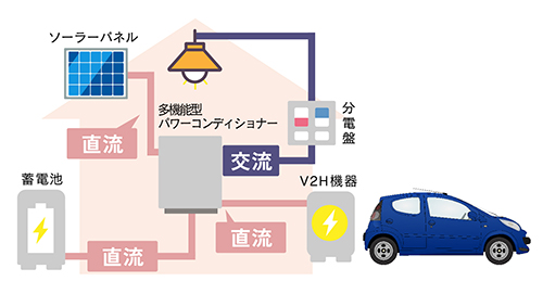 商品の種類はまだ多くはありませんが、太陽光発電、蓄電池、V2Hを1台のパワーコンディショナーで制御する多機能型です。