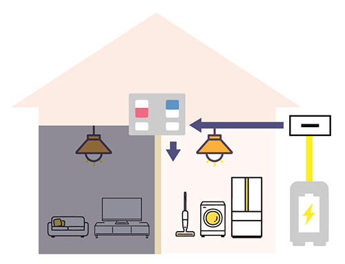 停電時にはあらかじめ決めておいた家電製品やコンセントに電気を供給するので、必要最低限の家電製品を長時間にわたり使用することが可能です。
