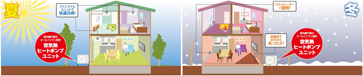 屋内の温度差が少なく、いつでもどこにいても気持ちよく過ごせる健康住宅を実現します。