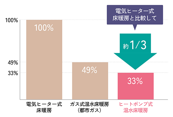 空気熱の使用率が高いため、コストやCO2の排出量を抑えることができます。
